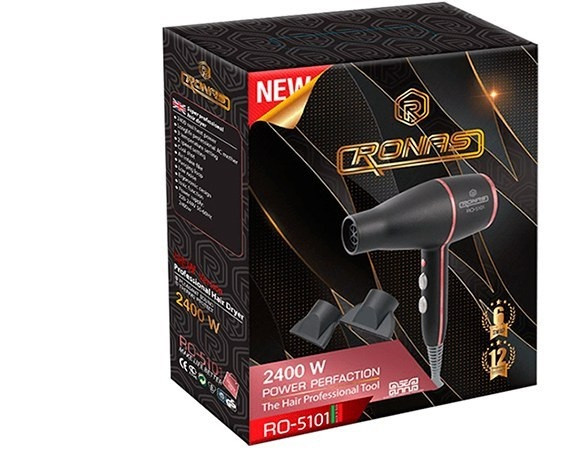 یکی از این محصولات با کیفیت برند روناس سشوار فوق حرفه ای 2500وات روناس مدل RO-5101s است. این محصول با بهره گیری از موتور AC دارای قدرت پرتاب باد بسیار بالایی است و در دسته سشوار های فوق حرفه ای قرار میگیرد. روی دسته این محصول 3 دکمه تعبیه شده که آنها تنظیم حرارت سشوار و سرعت دمیدن باد را به عهده دارند به این صورت که یک دکمه جهت ایجاد باد سرد به طور لحظه ای است. یک دکمه هم تنظیم 3 حالت باد خاموش، سرعت کم و سرعت زیاد را به عهده دارد. درون بسته بندی 2 عدد سری متمرکز کننده و یک عدد سری بزرگ و کیف دسته دار وجود دارد.