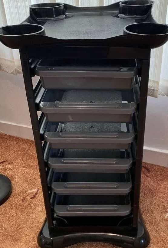 ترولی آرایشگاهی یکی از وسایل برای نظم دادن و مرتب کردن سالن های زیبایی و آرایشگاه ها می باشد که توسط آرایشگران استفاده می شود . ترولی ها درمدل های مختلف و کاربرد های متنوع با صفحه رویی می باشند که برای فضا سازی و دسترسی راحت و سریع به ابزار و وسایل بسیار مفید واقع می شود . از مهم ترین مزیت های ترولی به قابل حمل و پرتابل بودن آن می توان اشاره کرد . ترولی ها دارای طبقه های کشویی و بعضا فضای در دار می باشند و همچنین صفحه رویی که با کاربرد های مختلف مانند فضای کاسه رنگ ، محل نگهداری شانه و قیچی و … طراح میگردد .